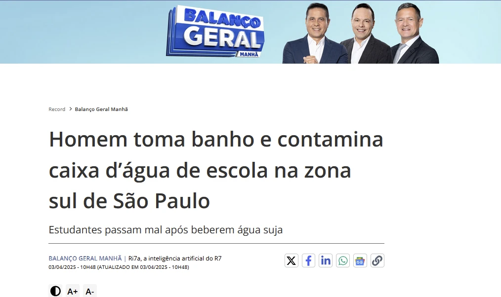 Meu filho está morrendo porque um homem defecou na caixa d'água da escola dele.